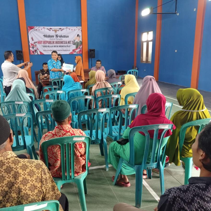Pembagian hadih Jalan Santai di Desa Banjengan kecamatan Mandiraja Dalam rangka memeriahkan HUT yang Ke-80. Kegiatan ini dilaksanakan pada Tanggal 18 Agustus 2025, yang dihadiri oleh seluruh Perangkat Desa dan Warga Masyarakat Desa Banjengan